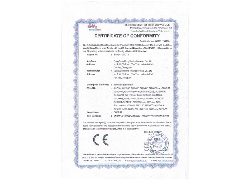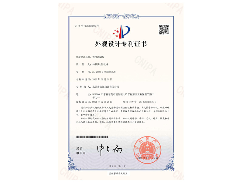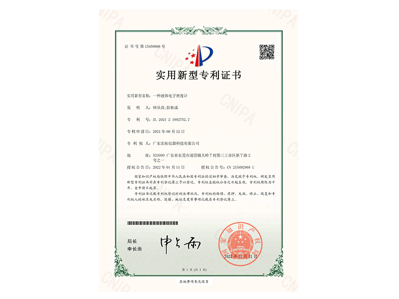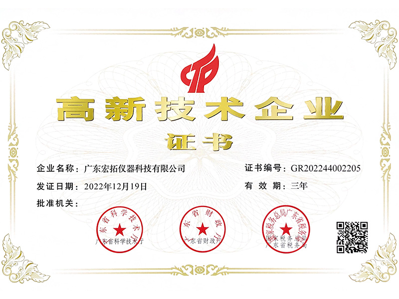 宏拓儀器通過ISO9001:2015質量體系管理認證,通過國家計量測試中心全面質量與性能檢測,獲得國家計量器具型式批準CPA證書,T/SGX 001—2019標準 與T/SGX 007—2019標準起草單位,參于制定的國家標準GB/T43139-2023正式發布,擁有自主知識產權,獲得國家多項實用新型專利證書與發明專利,產品通過歐盟CE認證。
