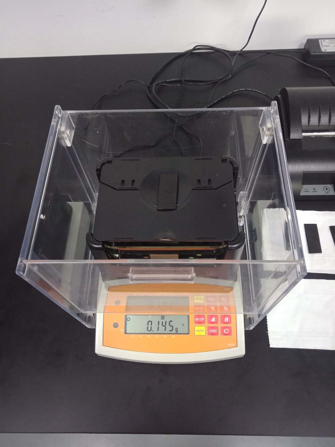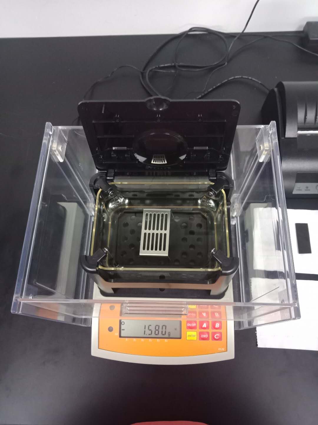 第一步:將測試樣品放在儀器測量架上稱量空氣中的重量,待重量穩(wěn)定后,按ENTER鍵,儀器記錄重量數(shù)據(jù);