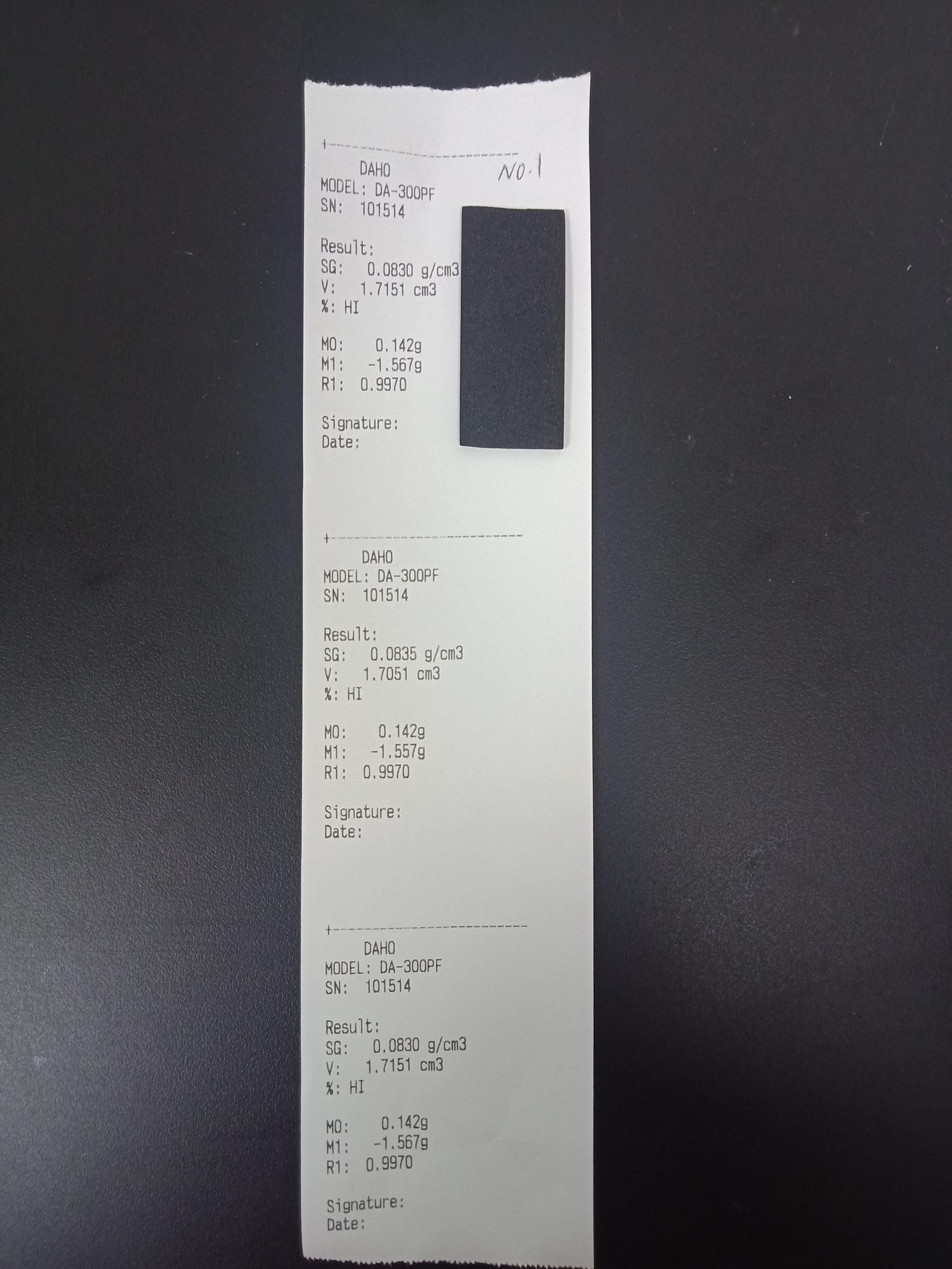 DA-300PF這款密度測試計主要用于測試橡塑膠類樣品,也可用于測試粉末冶金類樣品,陶瓷類樣品等其他固體樣品。此次測試的樣品為EVA塑料片材,采用特殊工藝制作而成,樣品表面平整,光滑。根據(jù)樣品的特性和客戶的需求,此次測試使用DA-300PF高精度橡塑密度測試計進行測試。