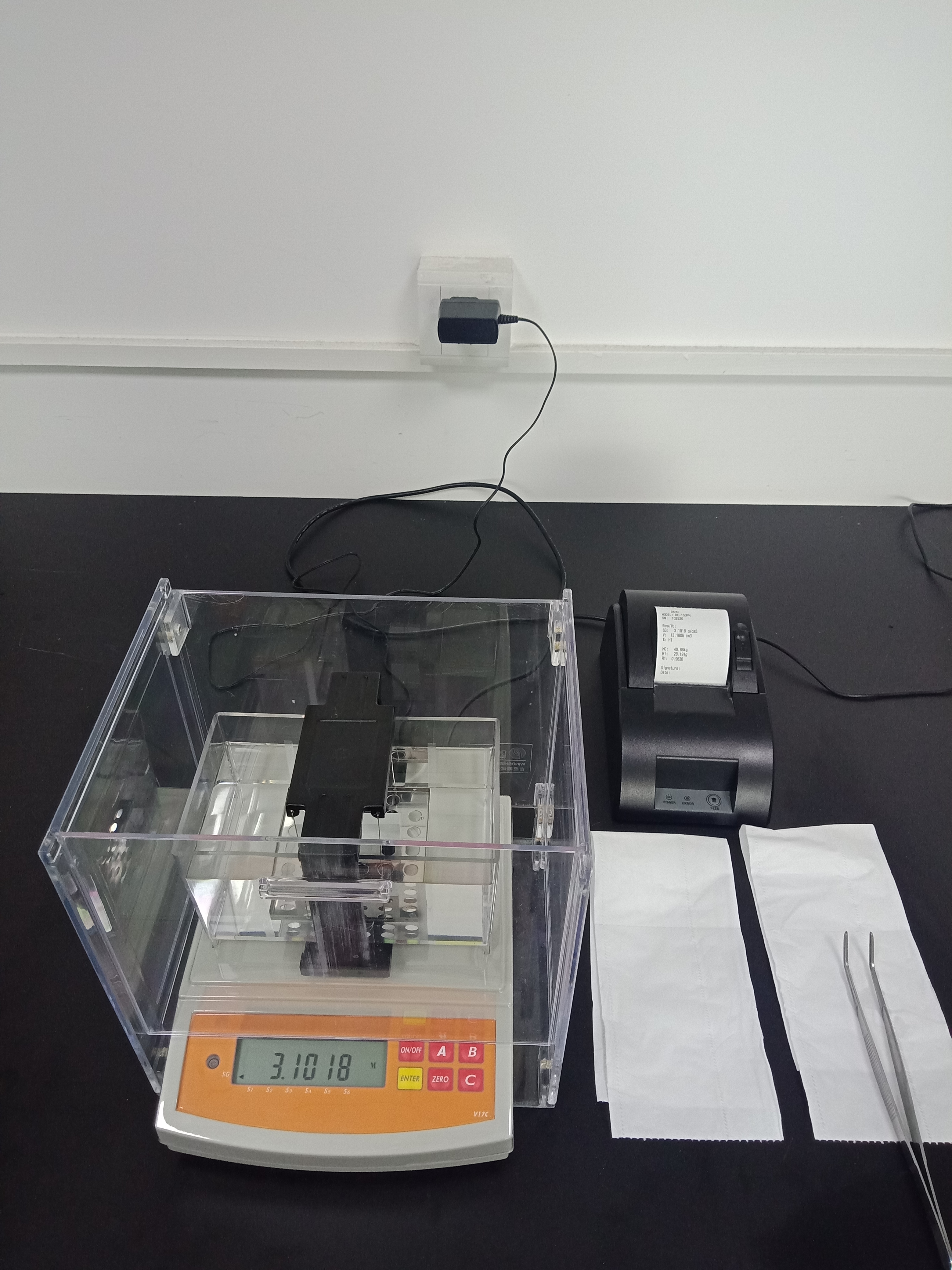 記錄重量數據,數據記錄完成后,儀器會自動計算樣品的密度值,并將計算出來的密度值結