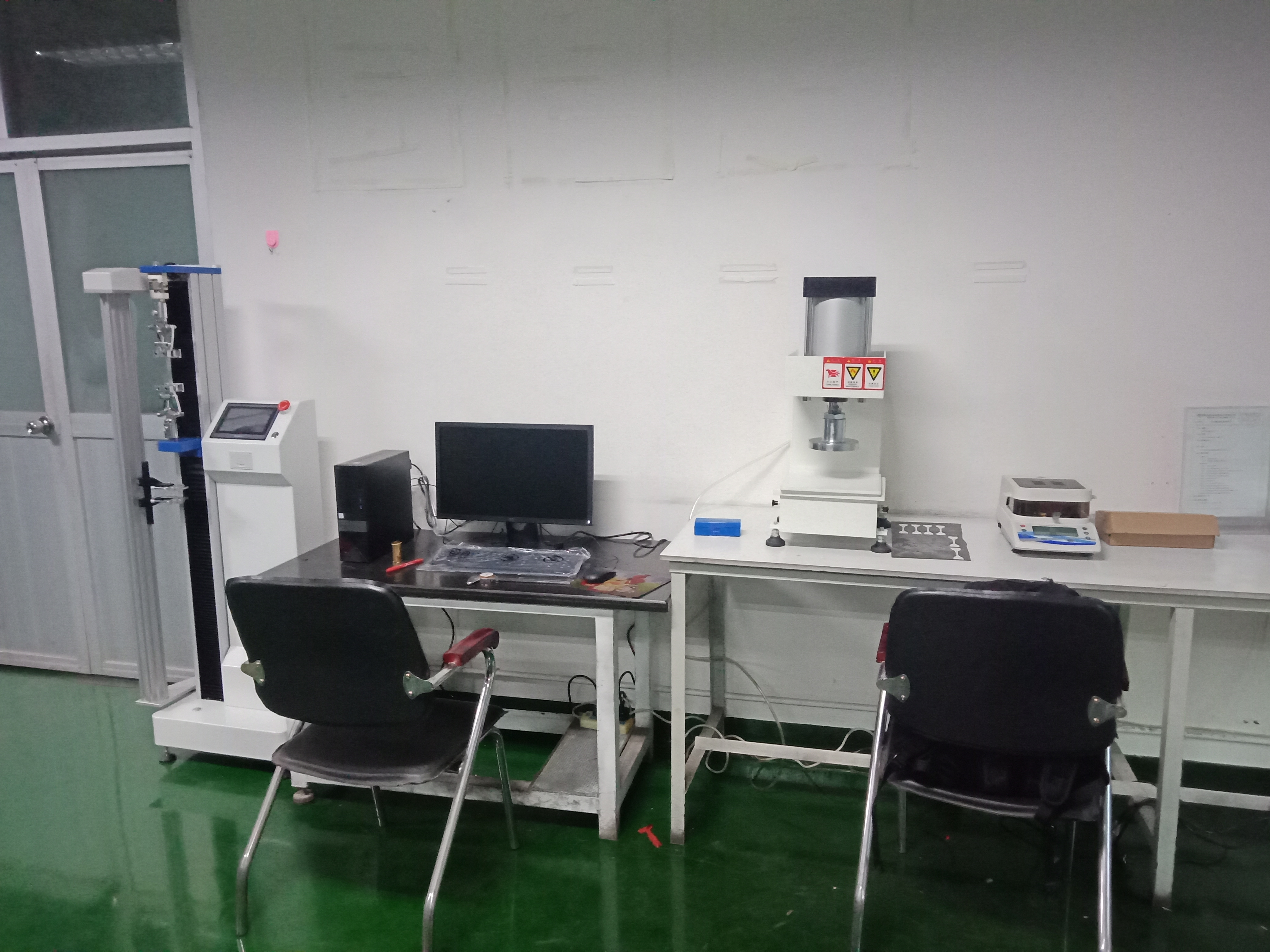 福磁電子的實驗室測試人員在操作使用AR-300G型密度測試儀對橡膠磁條樣品進行密度測試。