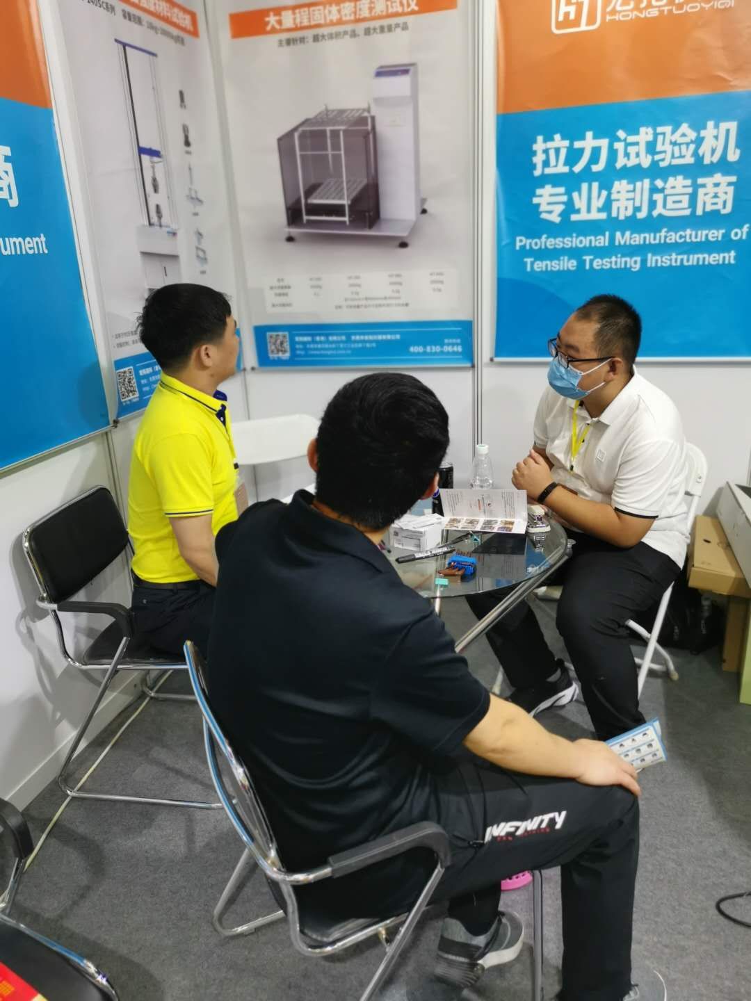 在本次展會上,東莞市宏拓儀器有限公司展出了自主生產的拉力試驗機,密度測試儀,高分子材料物性檢測儀器等企業工廠試驗室標配測試儀器,針對生產企業在拉力測試和物理性能測試中面臨的需求、效率、成本等問題,提供了切實有效的解決方案。歷時3天(9月13-15日)的展會,宏拓儀器展臺吸引了無數參展者的駐足,而工作人員也始終以飽滿的熱情、耐心地與參展者溝通,產品的特色和優勢在宏拓儀器工作人員精彩的演說及演示下展現得淋漓盡致,會場上的專業觀眾及參展企業對產品有一定了解之后,對宏拓儀器所展出的測試儀器表示了極大的興趣,很多客戶都現場進行了詳細咨詢,希望通過這次機會進行深入合作。