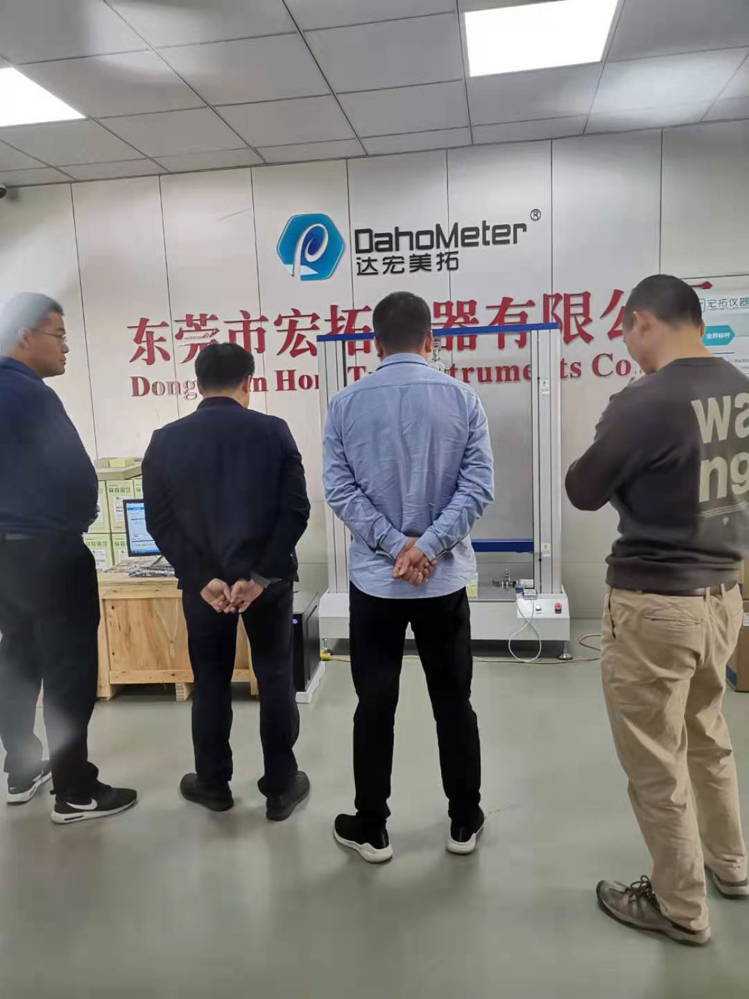 客戶湖北麥德利航空材料科技有限公司在觀看壓縮測試和驗收HT-140SC-5加寬型拉力試驗機