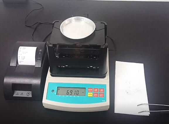 1、準備一臺固體密度計(做好砝碼校正和水溫補償)和礦石樣品(取一些小樣石頭)。如圖