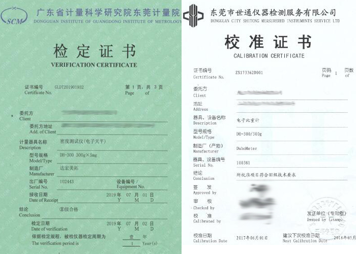 為了保證檢測儀器的準確性,客戶會選擇做第三方檢定或校準,達宏美拓密度計是滿足檢定或校準要求,請大家放心購買。