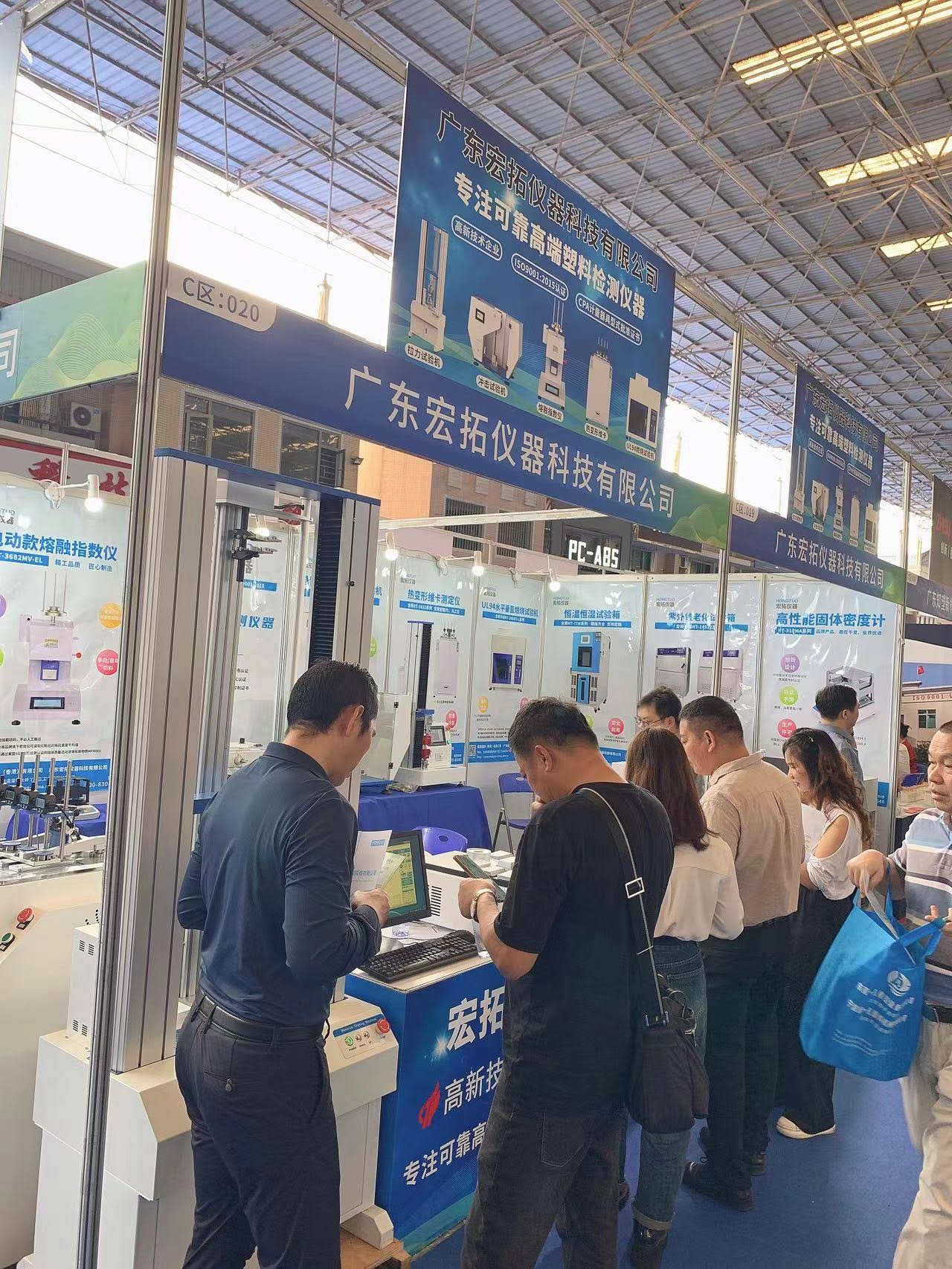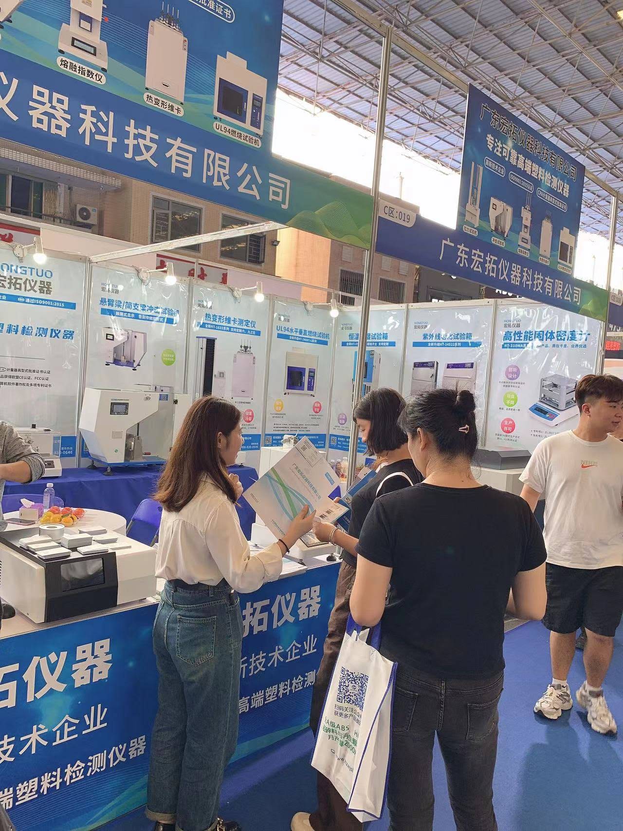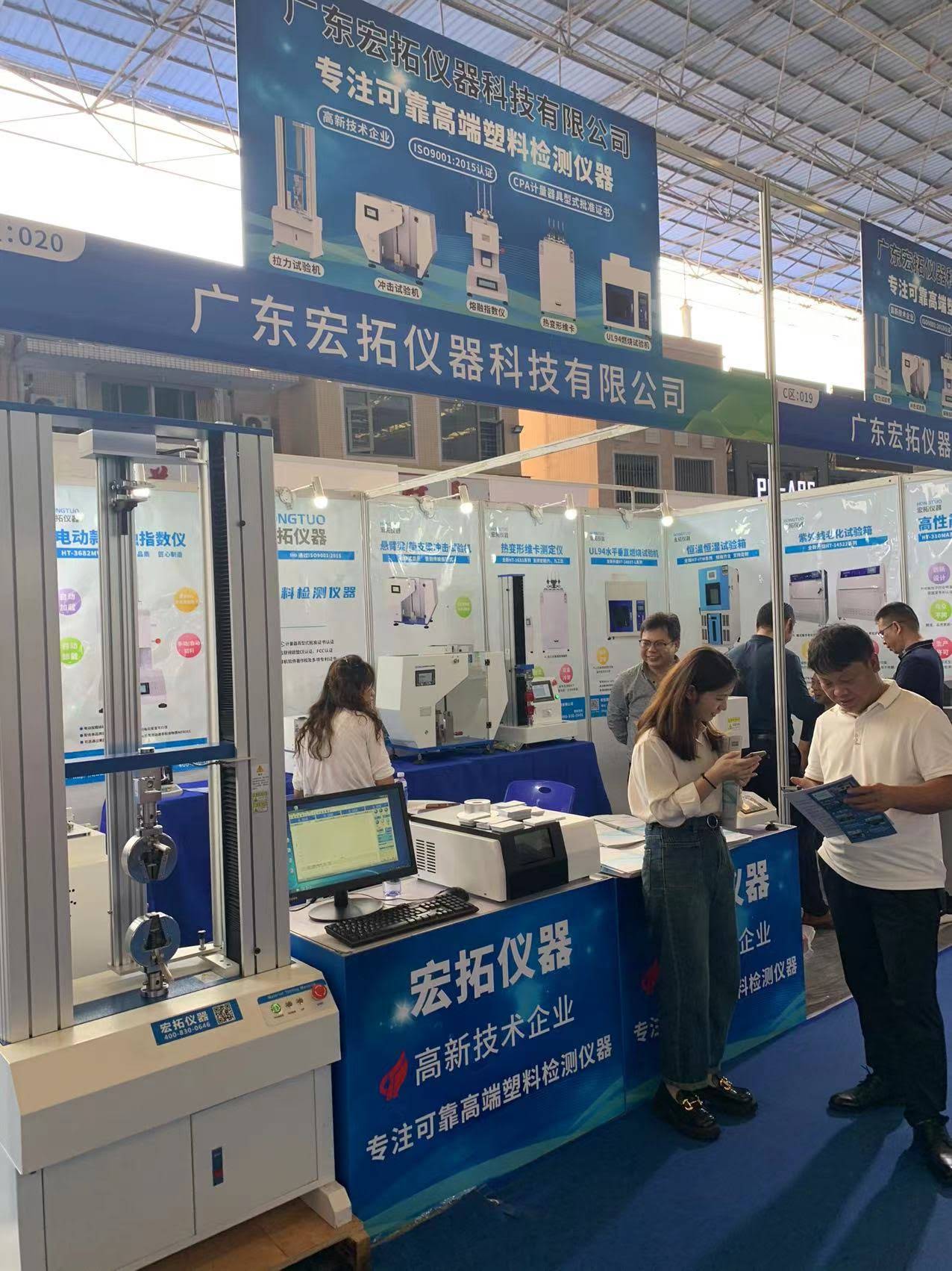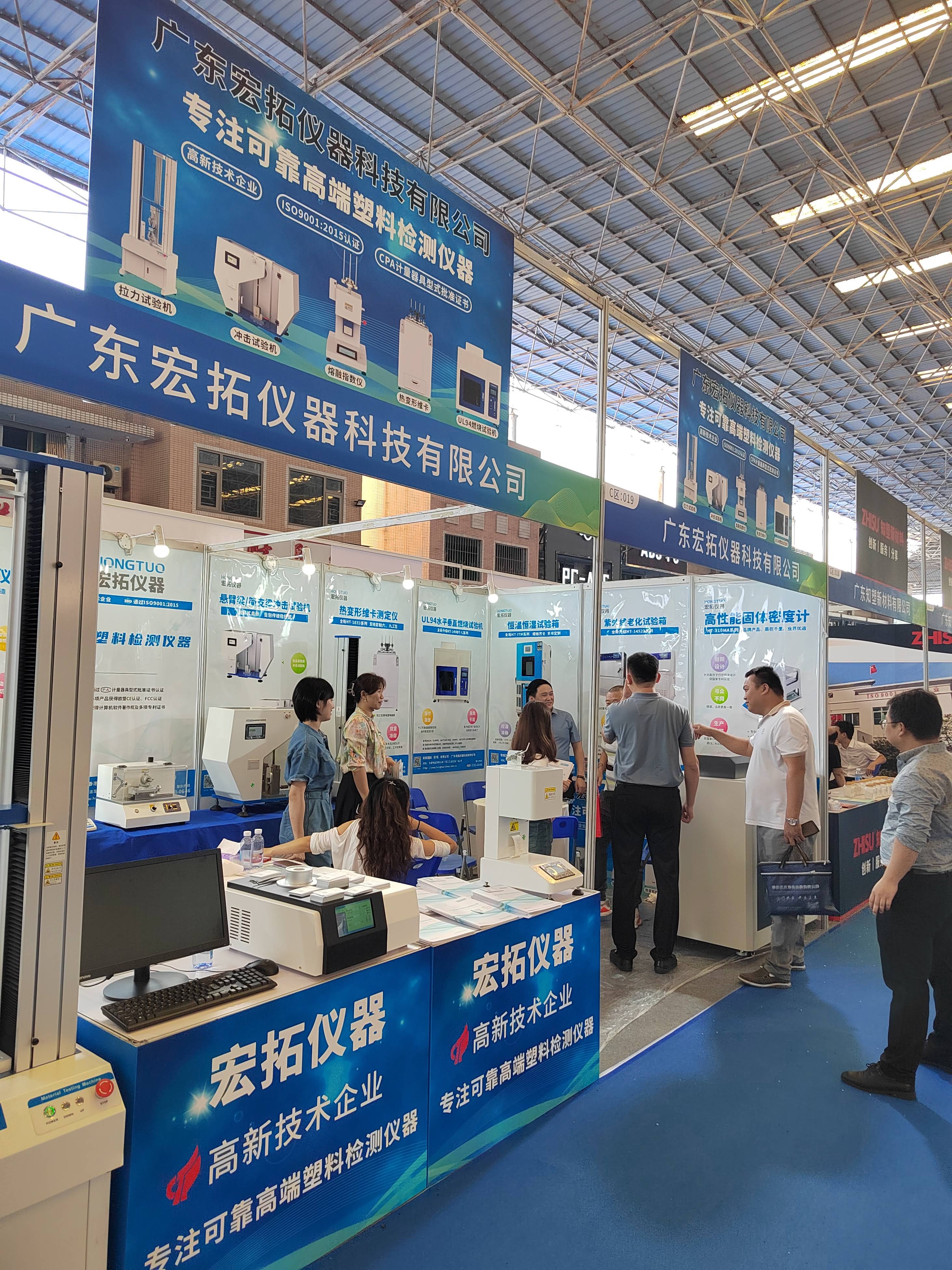 廣東宏拓儀器科技有限公司展出的拉力試驗機,溶體流動速率測定儀,熱變形維卡軟化點溫度測試儀,水平垂直燃燒測試儀以及產品解決方案吸引了眾多新老客戶的青睞,許多參加展會的客商對宏拓儀器所展出的產品表示了極大的興趣,很多客戶都現場進行了詳細咨詢并親自操作體驗,希望通過這次機會進行深入合作。本次展會,在與眾多客戶達成了合作協議或意向的同時,了解到了塑膠行業檢測儀器的新行情,開拓了更廣闊的市場視野,為宏拓儀器今后的發展帶來了新的契機。