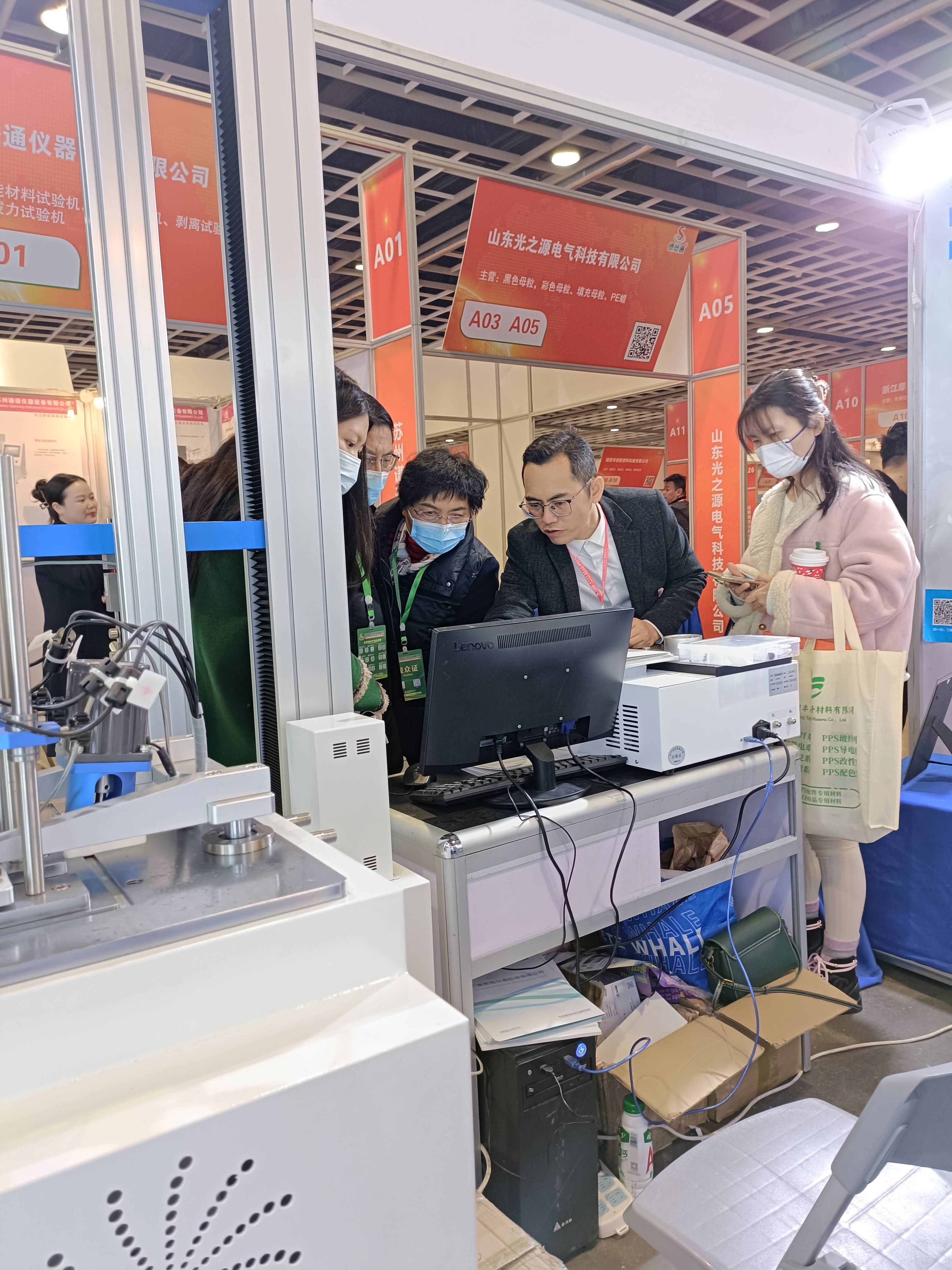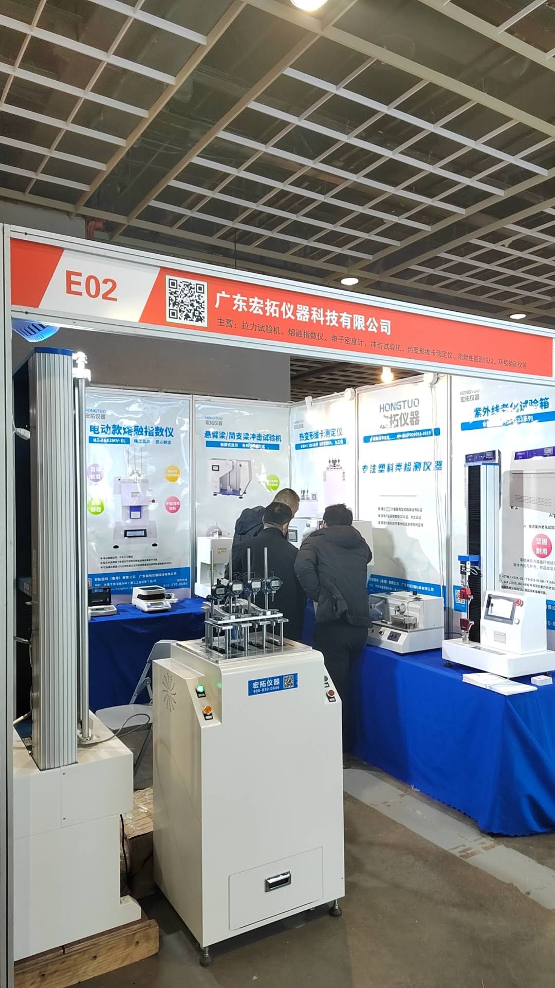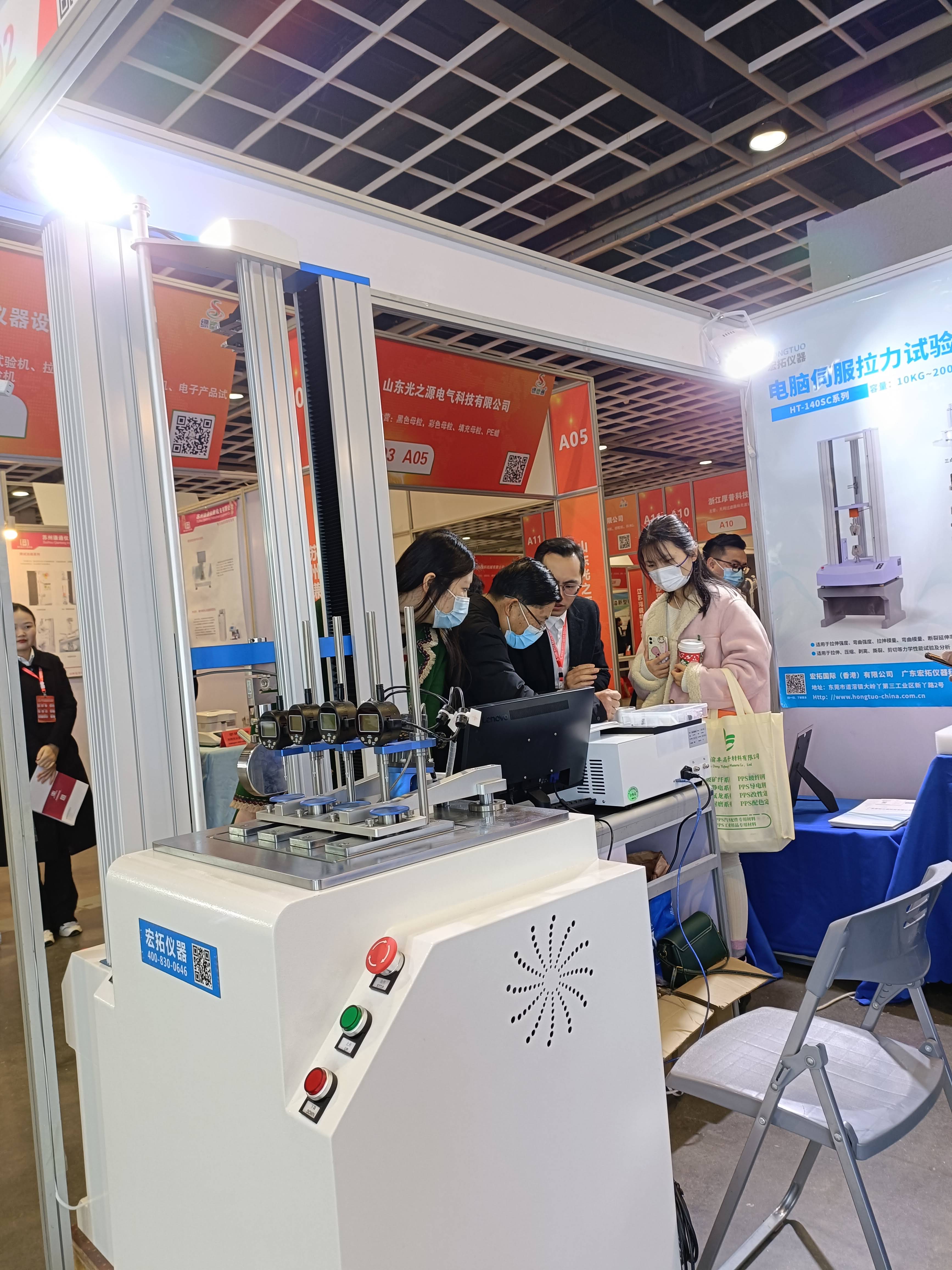 現場E02號展位,宏拓儀器攜塑料行業的明星產品,如萬能材料試驗機、熱變形維卡試驗機、差示掃描量熱儀,懸臂梁沖擊試驗機、熔體流動速率儀,密度測試儀等塑料行業物性測試儀器,宏拓儀器致力于為塑料行業上下游搭建優質的塑料檢測儀器服務體系,公司產品在展會現場頗受塑料行業客戶的高度認可和好評,塑料行業內人士、各廠商企業紛紛前來宏拓儀器展位交流和咨詢。