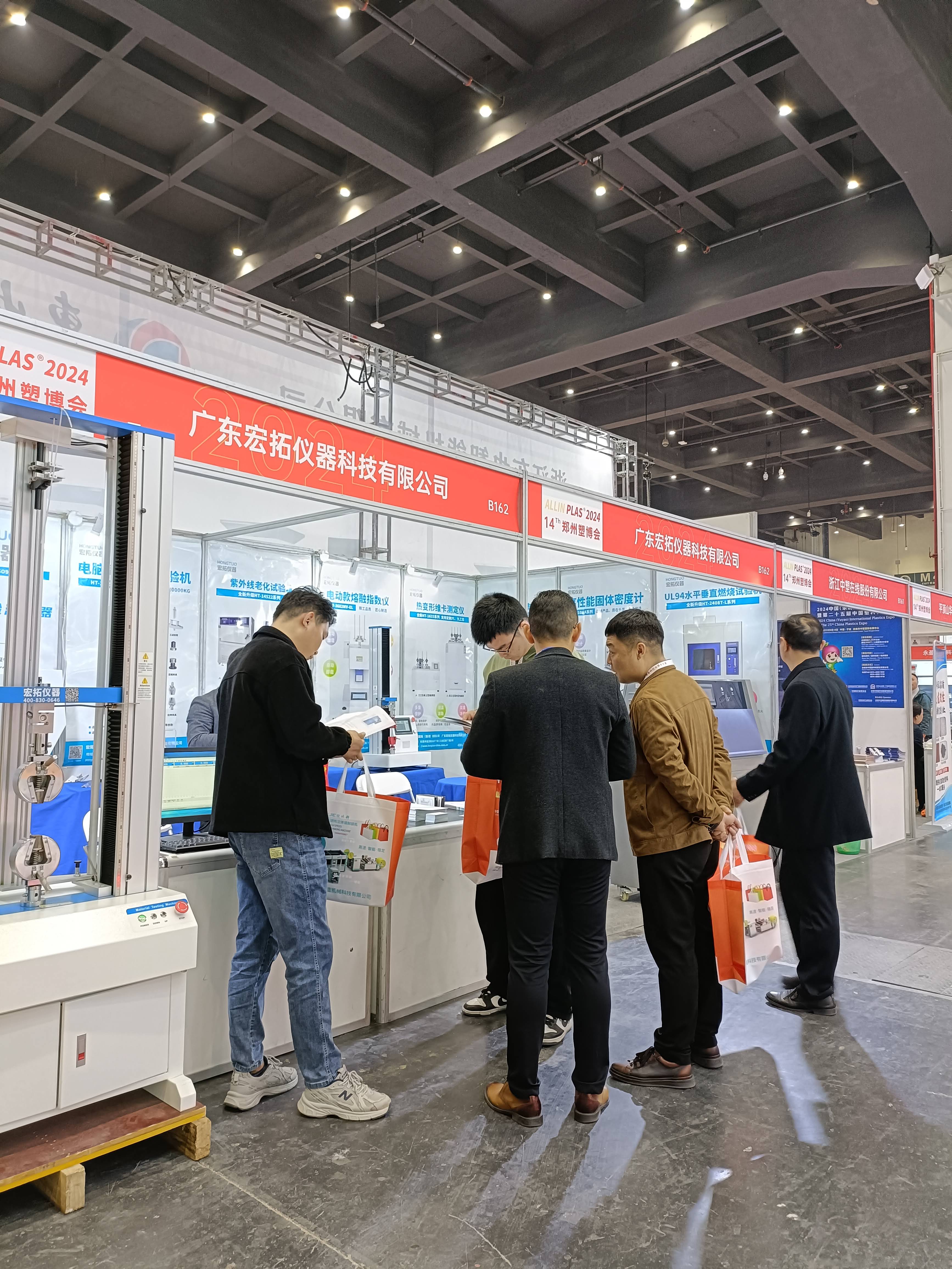 宏拓儀器經過精心準備,攜新型萬能材料試驗機,密度測試儀、水份測試儀、熔融指數儀、熱變形維卡軟化點測定儀等檢測儀器參展,為塑料行業生產企業年后開工采購,替換進口和更新升級實驗室檢測儀器提供一站式解決方案,匠心獨運的設計,精準無誤差的測試結果,吸引許多塑料行業觀展商來到宏拓儀器展位參觀和交流,在現場聽取宏拓儀器工作人員詳細介紹檢測儀器,以及講解檢測儀器如何使用,不少塑料行業觀展商與宏拓儀器工作人員互相交換名片或聯絡電話和微信,表現出濃厚的合作意向。