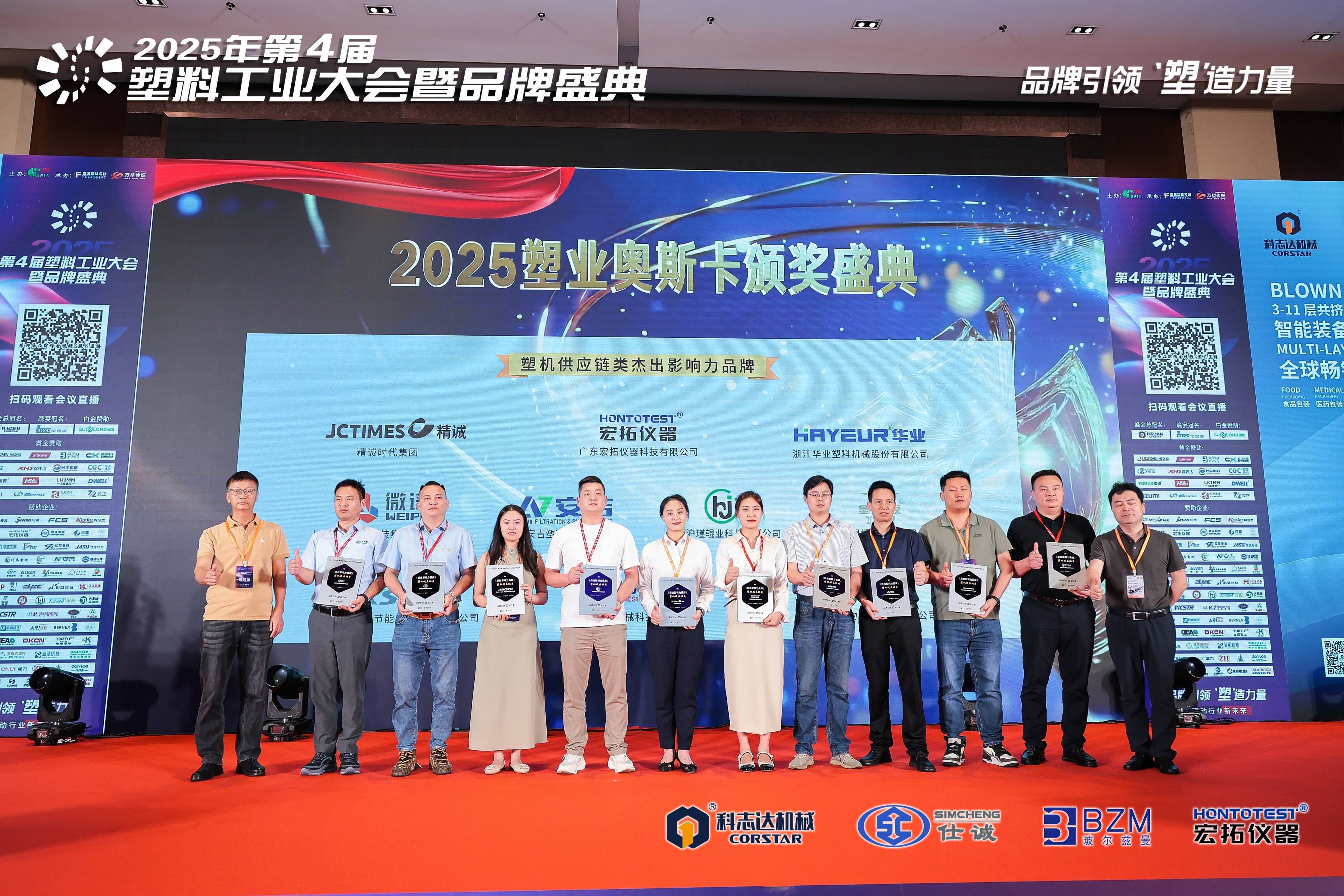 當日下午,大會進入以“品牌引領 ‘塑’造力量”為主題的頒獎環節。現場頒發了“杰出影響力品牌”“匠心智造創新品牌”“技術創新品牌”及“創新產品”等重要獎項。評審團由廣東省塑協執行會長符岸、中國合成樹脂協會名譽會長鄭塏、北京化工大學教授/博導張亞軍、華南理工大學教授/博導何慧等十位行業權威專家組成,秉持公平、公正、公益原則,表彰優秀企業,推廣創新成果,樹立行業典范。宏拓儀器憑借在塑料檢測儀器領域卓越的技術創新實力,榮獲“塑機供應鏈類杰出影響力品牌獎”,體現了行業專家對其技術能力與品牌影響力的高度認可。