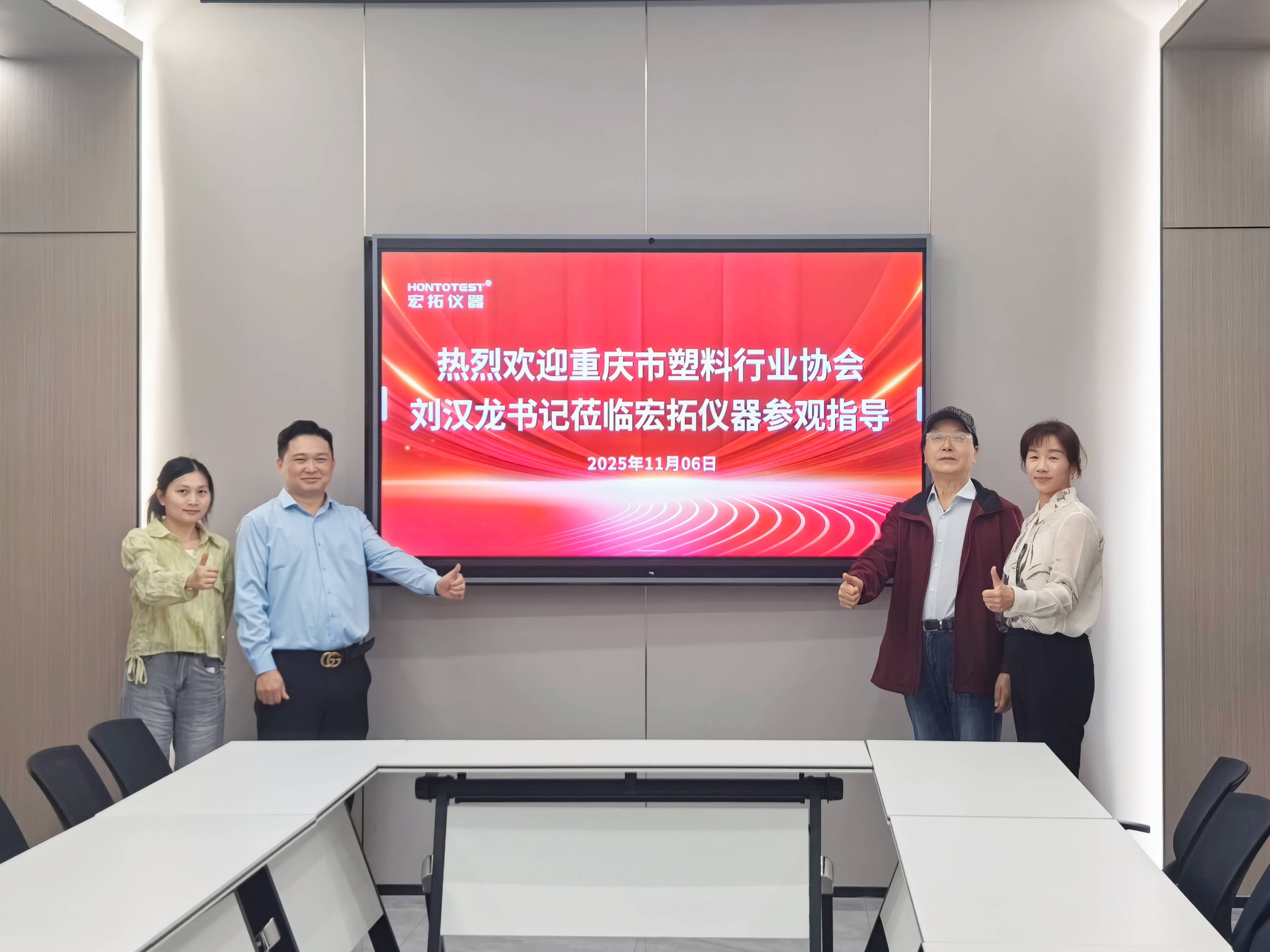 2025年11月6日,由重慶市塑料行業(yè)協(xié)會劉漢龍書記、江西省塑料工業(yè)協(xié)會文承昊會長、山西省塑料協(xié)會王慧凱秘書長帶領(lǐng)的塑料協(xié)會參觀團(tuán)齊聚廣東宏拓儀器科技有限公司,在董事長鐘從崗的全程陪同下進(jìn)行參觀。此次到訪參觀不僅全面展示宏拓儀器在塑料檢測儀器行業(yè)內(nèi)的專業(yè)能力,也為行業(yè)協(xié)同發(fā)展搭建高效的交流平臺。